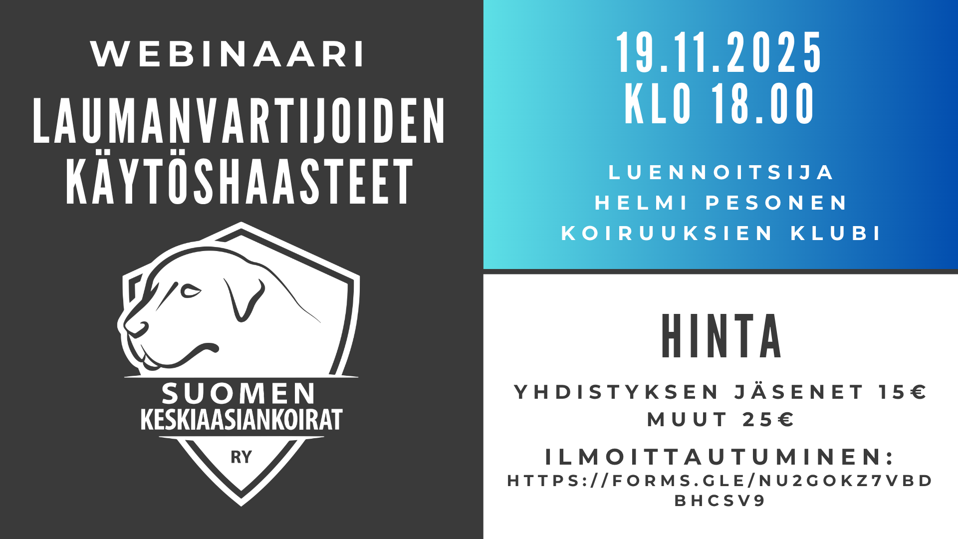 Luennolla käsitellään laumanvartijoiden tyypillisimpiä käytöshaasteita ja nostetaan esiin laumanvartijoiden erityispiirteitä. Luennolla käsitellään asioita, joihin on hyvä kiinnittää huomiota, jotta laumanvartija voi hyvin ja käytöshaasteita voidaan pyrkiä myös ennalta ehkäisemään.